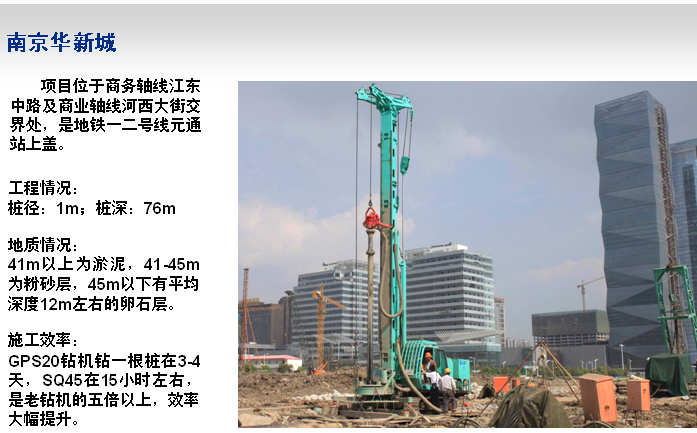 SQ45全液压循环钻机可实现正循环、泥浆反循环以及气举反循环等各种循环方式的桩基础施工,对传统工程钻机的施工效率和操作模式实现重大突破。